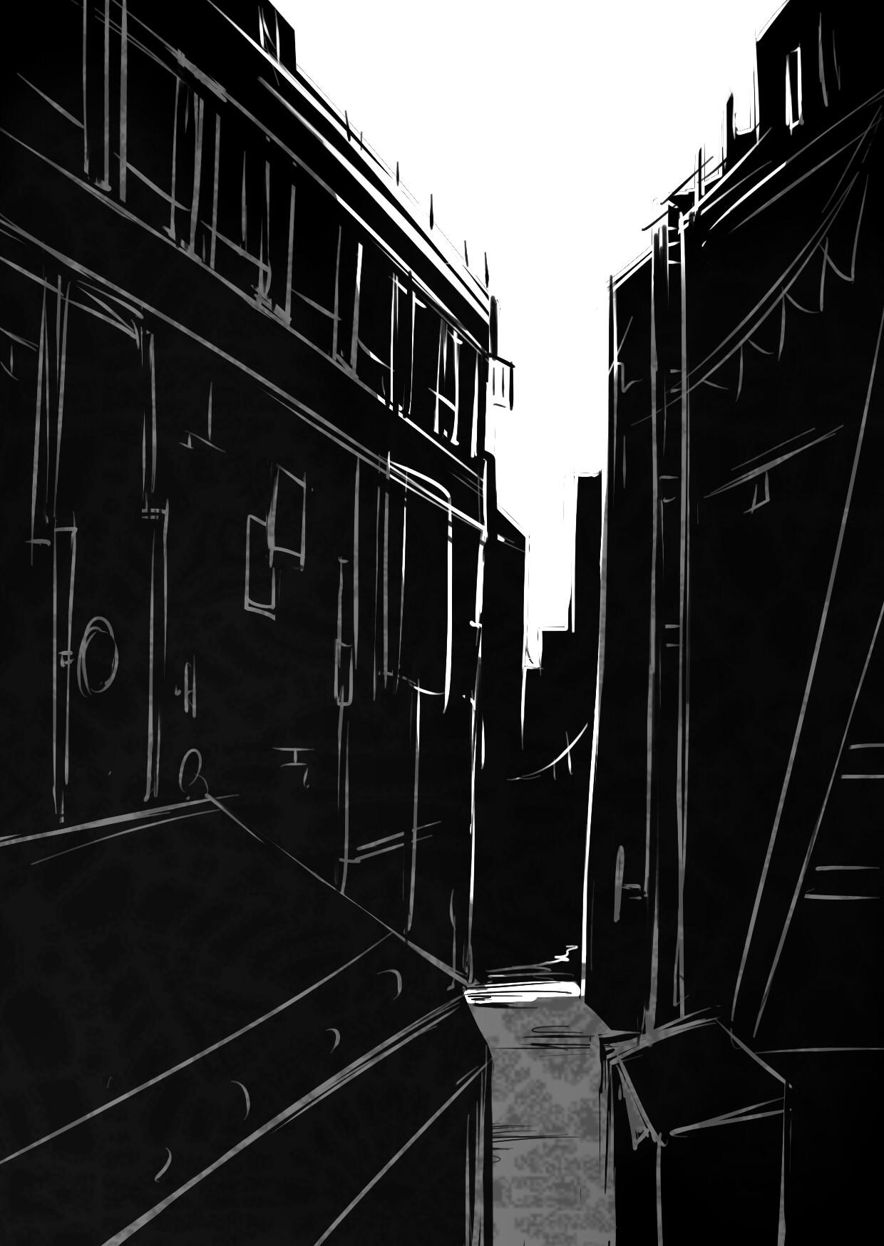 暗巷,那是由建物夾縫形成的空間。儘管一旁就是因狂歡節而熱鬧起來的大街,在這條幽暗的小巷裡,街上的喧嘩聲彷彿被建物的陰影阻隔,感知到的,只有幽幽的水氣,以及老舊水管滴落的水聲。
