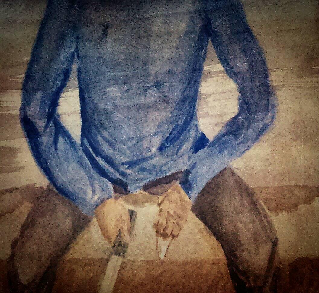 貳亟坐在或許稱做「家」的屋裡的破舊沙發上,視線專注的看著那把刀,這時他應該出去了,但他卻只是一直擦拭他的武器。