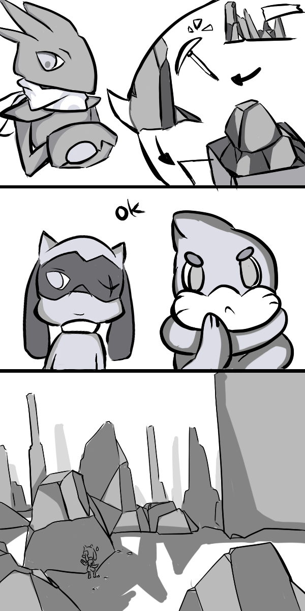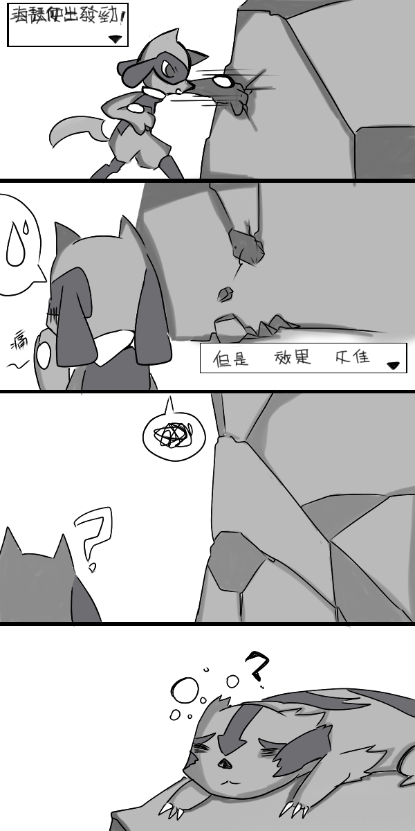 看準目標後弓起後腿,聚集起比對練時更多的波導,一蹬腿激發電光一閃的高速,使盡全力撞擊上去。高硬度的岩質讓反作用力比預期的還要大,感到些許暈眩的退了幾步,站穩身子後才甩了甩頭讓意識清醒點。