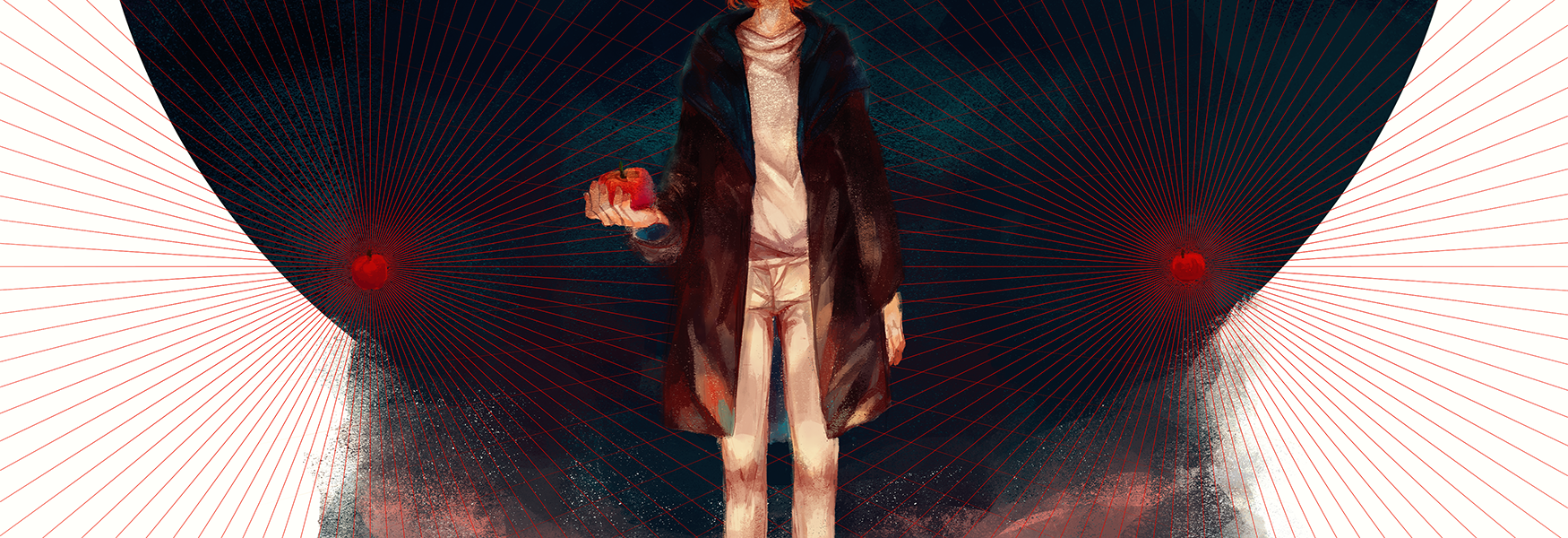 金髮的男人坐在昏暗房間的正中央,懸浮的燈光圍繞在他的周圍,他翻閱著泛黃的書籍,但視線並不在那些艱澀破損的文字之上。灰藍色的眼睛看著某個角落,鷹勾型的鼻子哼出意昧不明的笑聲。