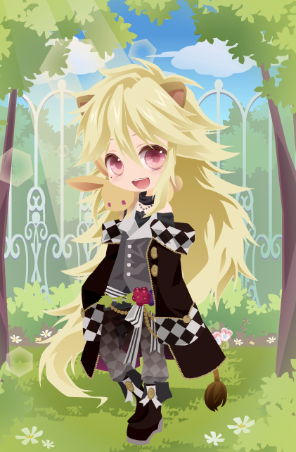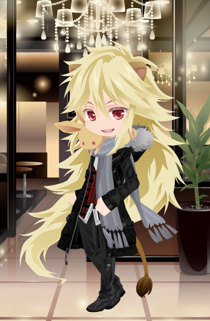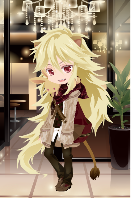 蓬鬆而柔軟的頭髮中藏著一對獅子耳朵,身後有條獅子尾巴。