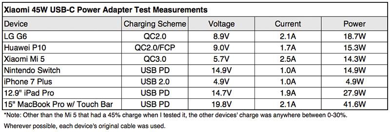 Этот адаптер быстро заряжает все: ноутбуки Dell и HP (смотри на мощность оригинального адаптера), Apple MacBook, смартфоны Moto Z, Lumia 950 и 950XL, а также устройства с Quick Charge 3.0 (проверили, работает). Более того, с соответствующим кабелем USB-C –> Lightning за полтора часа заряжается и iPad Pro 12.9. Единственное устройство, которое «не завелось» от этого адаптера, — смартфон Gigaset ME, а OnePlus 5 способен взять от адаптера не более 1,5 А при напряжении 5 В.