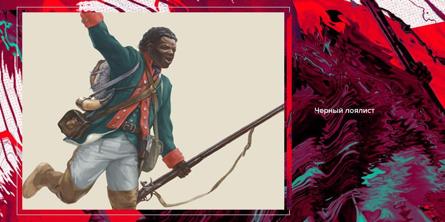 Говоря о лоялизме в Войне за независимость, невозможно не упомянуть борьбу чернокожих за свою свободу под сенью «Юнион Джека». В 1772 году в Великобритании лорд Мэнсфилд создал судебный прецедент, постановив, что в практике общего права Англии и Уэльса рабство не имеет законных оснований. Данное решение не распространялось на британские колонии. Тем не менее симпатии множества чёрных в Северной Америке адресовались имперской власти. Пользуясь этими настроениями, в ноябре 1775 года колониальный губернатор Вирджинии лорд Данмор провозгласил декларацию, обещая свободу каждому рабу колонии, который бежит от мятежного хозяина и присоединится к королевской армии. В организованный Эфиопский полк записалось около 800 беглых рабов. С 1776 года на Севере воевали афроамериканские инженерные части — «Чёрные пионеры». Наибольшую известность приобрела «Чёрная бригада» в количестве 24 человек во главе с «полковником Таем» (формальное прозвище, так как получение неграми офицерских должностей воспрещалось), которая «кошмарила» в 1779–1780 годах сепаратистов Нью-Джерси. Существовали и прочие «чёрные» части — в общей сложности в период Войны за независимость в британской армии на континенте служило 12 тысяч афроамериканцев (за революционное дело боролись куда меньше негров — всего около 5 тысяч).