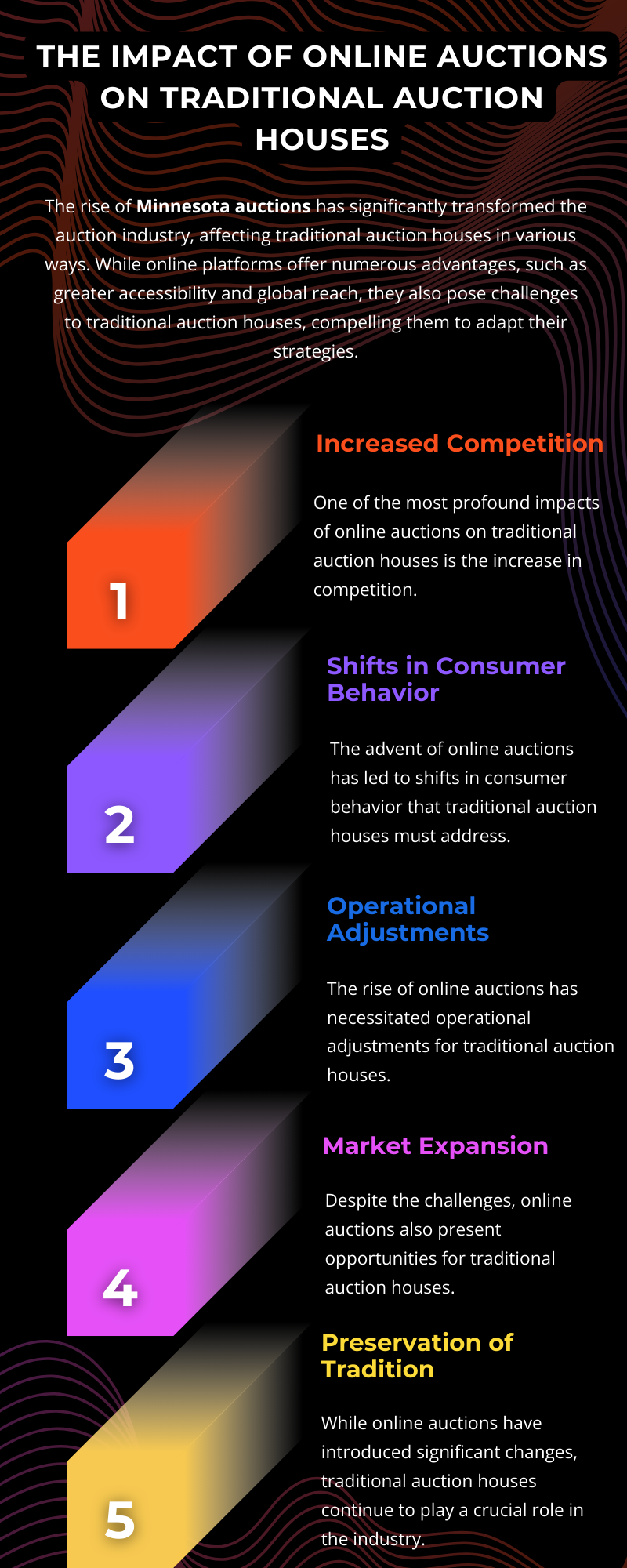 The impact of Minnesota auctions on traditional auction houses is significant, driving competition, altering consumer behavior, and necessitating operational adjustments. While these changes present challenges, they also offer opportunities for growth and adaptation. Traditional auction houses that embrace technology, innovate their practices, and leverage their unique strengths can successfully navigate the evolving landscape and continue to thrive in an increasingly digital world.