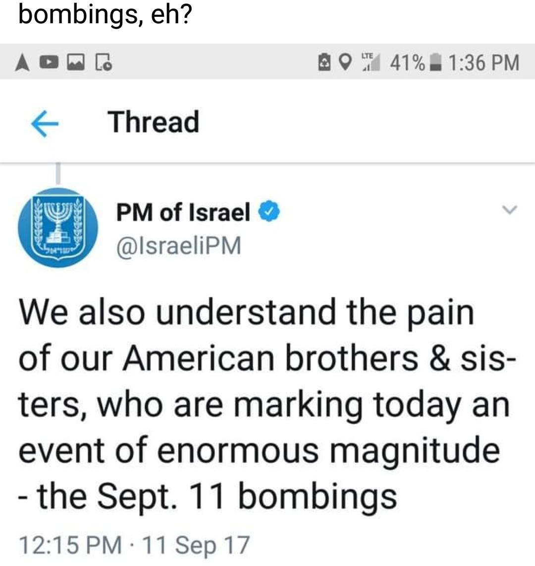 Netanyahu's immediate reaction to the news of 9/11
