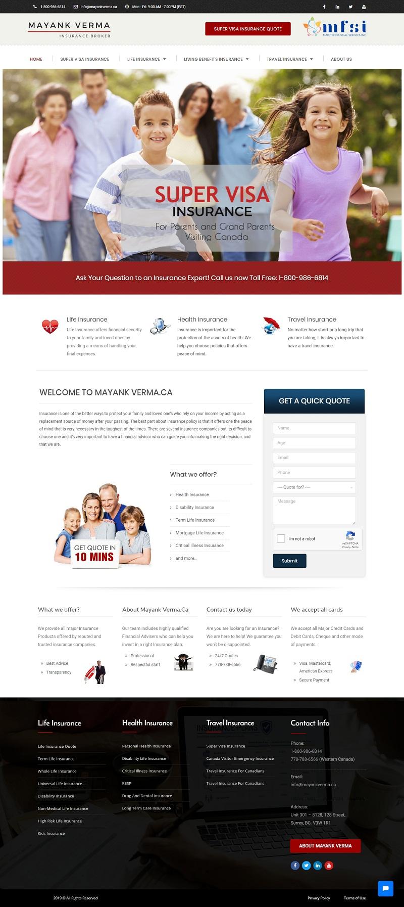 We are working as an Insurance Broker since 2007 and proudly serve you and many more Canadians and offers financial protection and wealth management products and services to its clients since then. Call us for more details 1-800-986-6814.