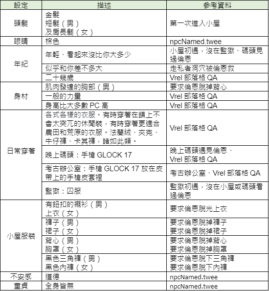 - 開發者會使用「他們」作為人稱代名詞(而非「他/她」),因為遊戲中的所有角色性別都由玩家自由選擇。