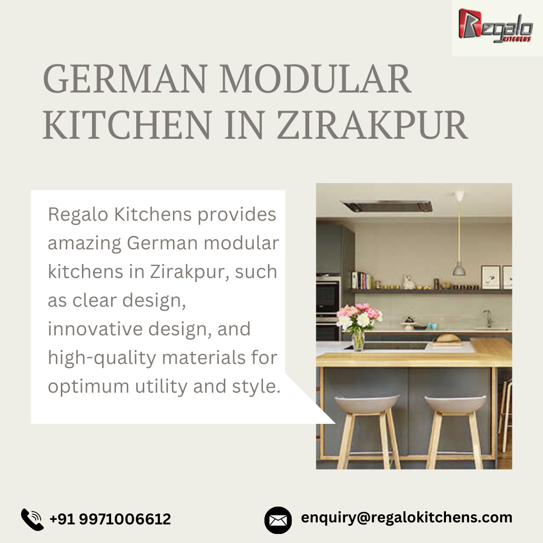 Regalo Kitchens provides quality German Modular Kitchen In Zirakpur, mixing modern technology with elegant, trendy designs. These kitchens are noted for their great accuracy, durability, and efficient productivity, allowing adjustable layouts adapted to personal demands. With creative storage options and excellent materials, Regalo Kitchens ensures that each German modular kitchen provides a seamless combination of class, functionality, and modern design.