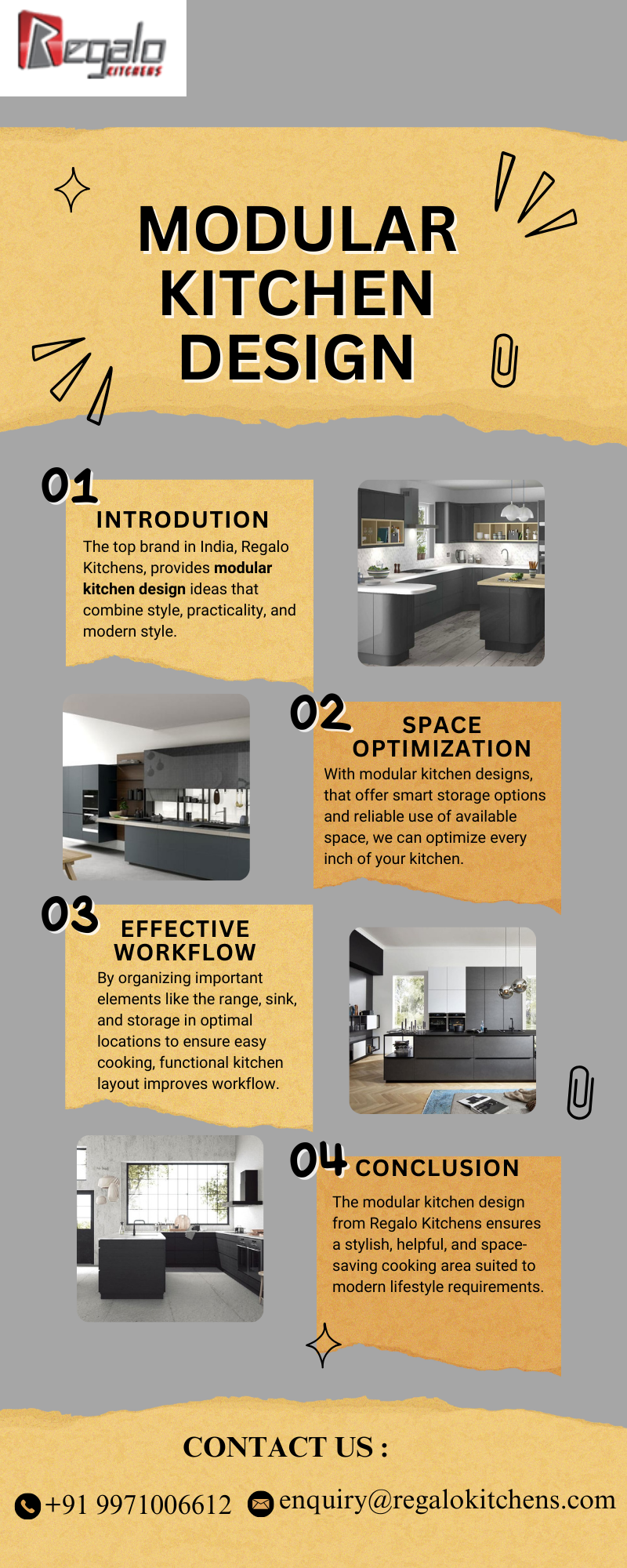 The stunning modular kitchen design from Regalo Kitchens can completely change your house. Our customized kitchen solutions are perfect for any space because we combine style and functionality. Our kitchens are made to suit your demands, if you're searching for smart, space-saving solutions or beautiful layouts. Experience the perfect balance of contemporary modern design and practicality with us, where each modular kitchen is carefully constructed to surprise.