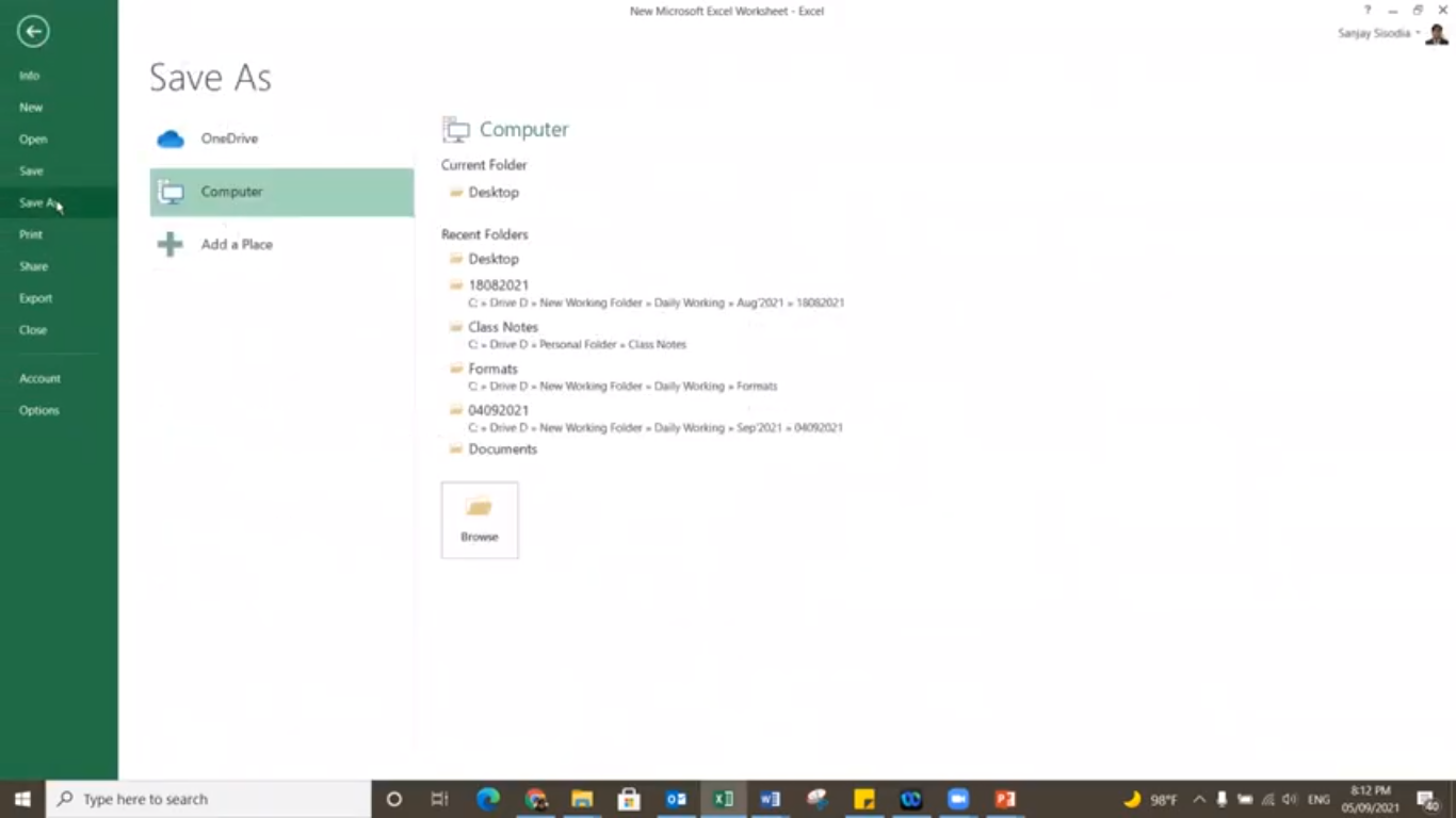 Similarly if you want to rename your workbook, you Click on File , choose Save As and change the name or right click on the file name and select the Rename option. Type in the new name that you want.