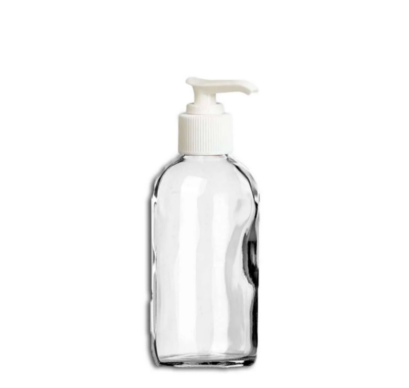 Shop now: https://www.youroiltools.com/collections/glass-lotion-bottles/products/4-oz-clear-glass-bottle-w-white-lotion-pump