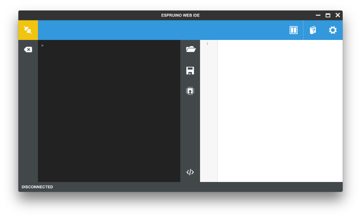 Разработчики Espruino создали свою IDE, Espruino Web IDE. Эта программа распространяется через Chrome Web Store, также существуют нативные приложения для Windows (32 и 64).