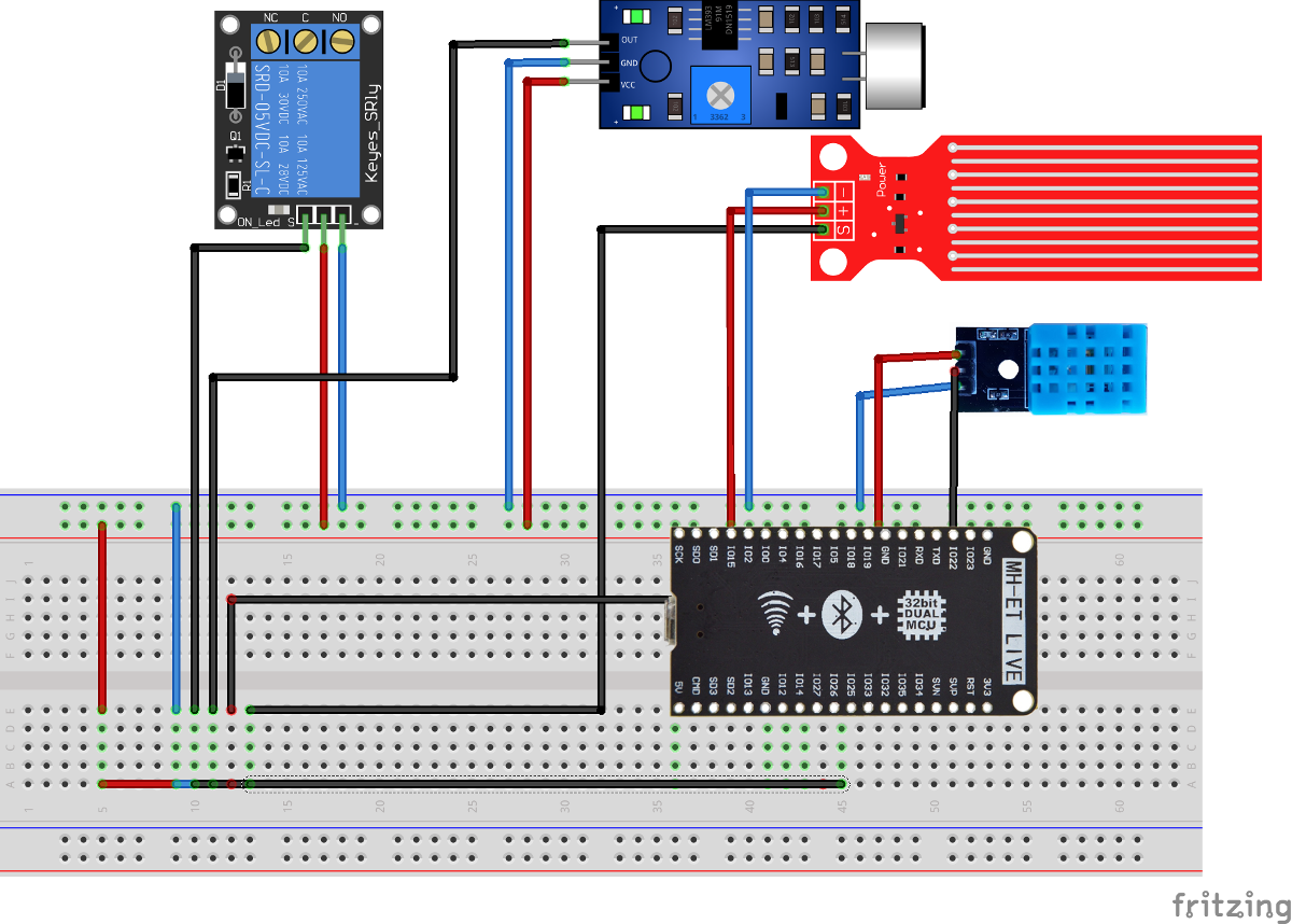 Еще из интересных нюансов у меня есть переменные SoundLevel и Waterlevel, поскольку и датчик уровня воды, и датчик звука — аналоговые, показания на разных платах могут различаться и необходимо провести калибровку. На датчике звука установлен потенциометр, для регулировки чувствительности.