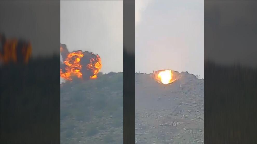 Benzer bir görüntü, geçtiğimiz günlerde Girê Hakkarî Direniş Alanı’nda bulunan Girê Şehîd Zemanî savaş mevzilerine dönük işgalci Türk ordusunun taktik nükleer bombalarla gerçekleştirdiği saldırı sırasında kaydedilmişti. 24 Ağustos 2022’de ANF’de yayınlanan söz konusu görüntülerde, yaklaşık 5 kilometre uzaklıkta çekilmesine rağmen bombanın yarattığı etkiyle kayıtta olan kameranın sallandığı görüntülere yansımıştı.