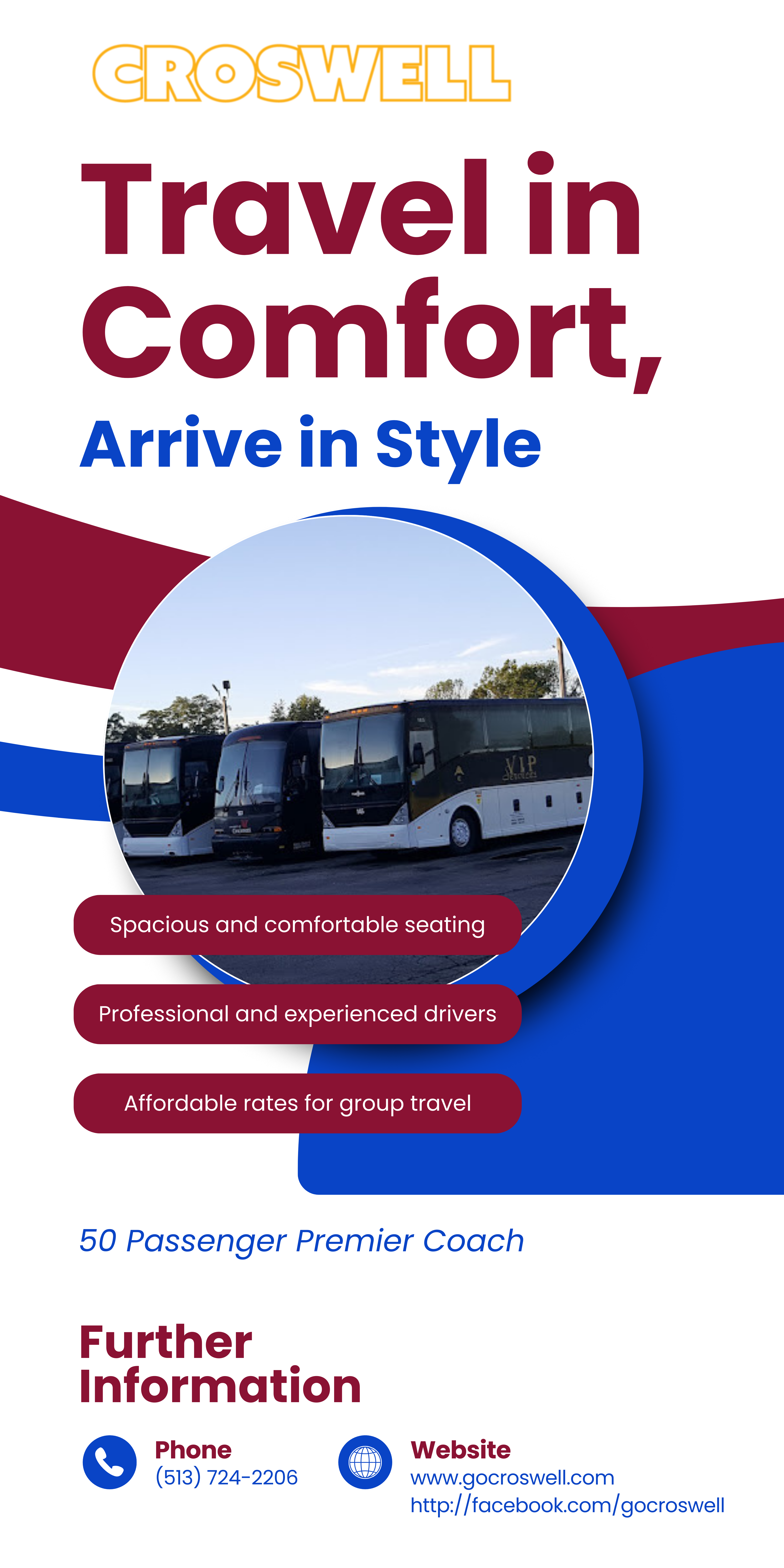 Experience comfort and convenience with our 50-passenger charter bus rental, designed to accommodate large groups traveling together. Whether it's for a corporate event, school trip, wedding, or family reunion, our modern buses offer spacious seating, climate control, and onboard amenities to ensure a smooth, enjoyable ride. Enjoy stress-free travel with our professional drivers, ready to take you to your destination in style and safety. Book your 50-passenger charter bus today and make your group trip memorable!