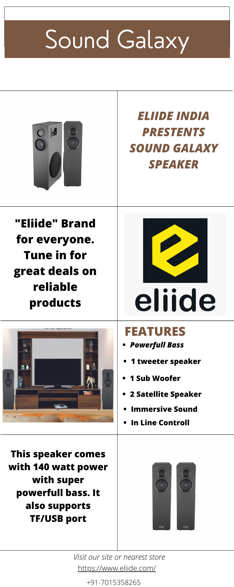 Eliide India presents you our best bluetooth speaker under 10000? These are made up of wooden frame for an improved acoustic experience. This speaker comes with 140 watt power with super powerfull bass. It also supports TF/USB port .These speaker are widely compatible and also provides immersive sound. For placing an order visit our website.