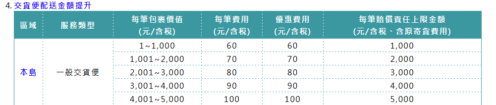 麻煩參考下圖,不同運費能賠償的金額不同。