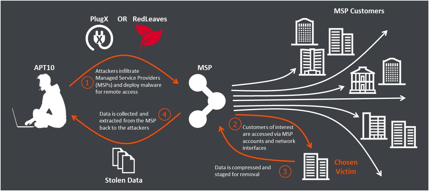 Современные тенденции оптимизации бизнеса создают новые векторы атак. К примеру, сейчас крайне популярны ИТ-услуги на аутсорсинге и облачные сервисы. APT10 и другие хакерские группы начинают использовать их в качестве отправной точки для проникновения на компьютеры жертв.