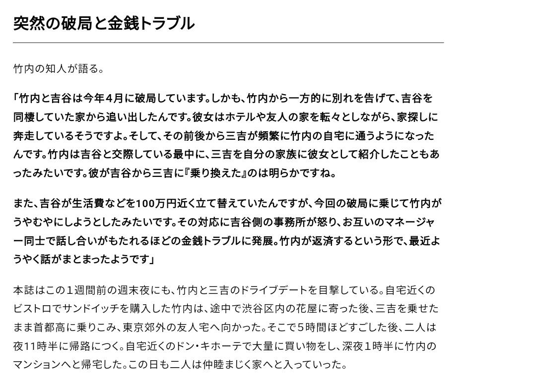 竹内涼真が三吉彩花と「乗り換え半同棲」 交際女優を追い出して