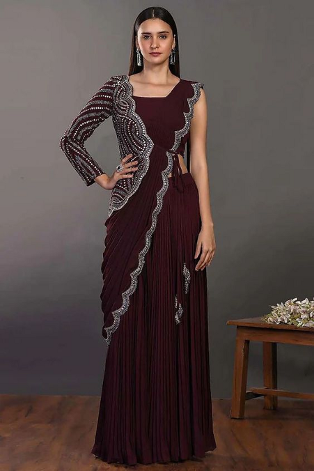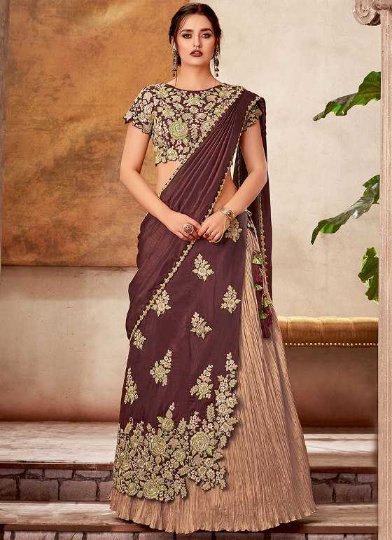 The colour maroon is considered auspicious in Indian culture. It is worn during weddings and other festive occasions. It looks good on almost all skin tones and brings out one’s natural beauty. Besides, it gels well with almost every other colour and can be used in colour-blocked looks with great ease. Our maroon Lehenga sarees in India range is easy to sift through on account of our various shopping filters based on brand, occasion, fabric, price, detailing and ornamentation, etc. The colour of your saree plays a paramount role too — it is important to know whether a shade will look good on you and go well as a combination with other colours. The way you style your look, including the accessories, hair and makeup all contribute to the effectiveness of your overall attire.