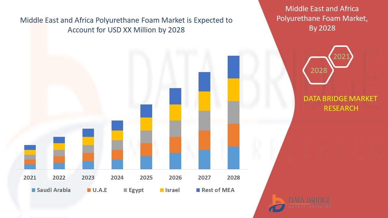 Middle East & Africa Polyurethane Foam Market, By Type (Flexible Foam, Rigid Foam and Spray Foam), End-User (Bedding and Furniture, Building and Construction, Electronics, Automotive, Footwear, Packaging and Others), Density Composition (Low-Density Polyurethane Foam, Medium-Density Polyurethane Foam and High-Density Polyurethane Foam), Country (UAE, Saudi Arabia, Israel, South Africa, Egypt and Rest of Middle East and Africa) Industry Trends and Forecast to 2028. This polyurethane foam market report provides details of new recent developments, trade regulations, import export analysis, production analysis, value chain optimization, market share, impact of domestic and localised market players, analyses opportunities in terms of emerging revenue pockets, changes in market regulations, strategic market growth analysis, market size, category market growths, application niches and dominance, product approvals, product launches, geographical expansions, technological innovations in the market. To gain more info on polyurethane foam market contact Data Bridge Market Research for an Analyst Brief, our team will help you take an informed market decision to achieve market growth.