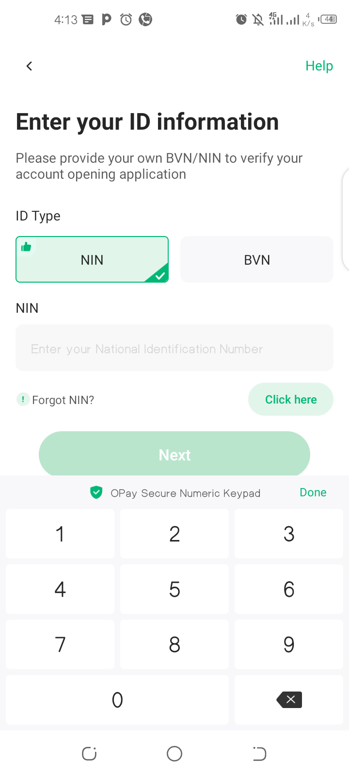 Opay will require you to upload a clear photo or scan of a valid government-issued ID, such as a national ID card, international passport, or driver's license.