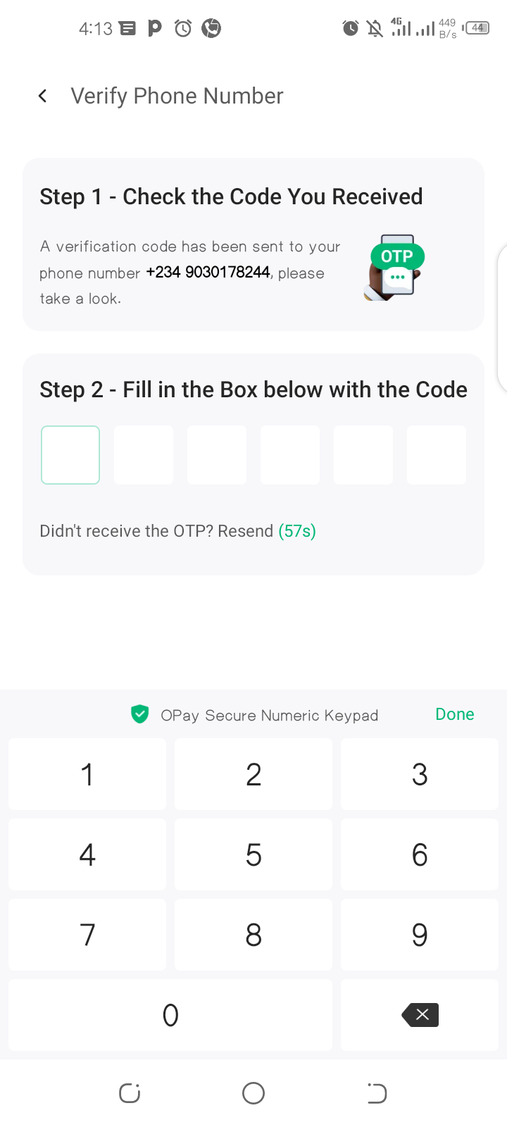 Opay will then send a verification code to your phone to confirm the number. 👇
