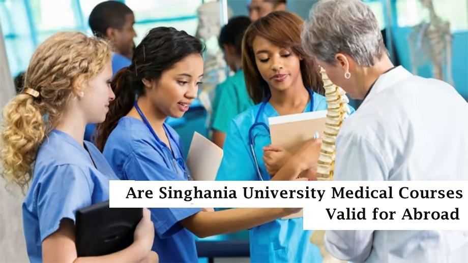 Yes, Singhania University's medical courses are valid for abroad. Singhania University's objective is to create "Indian Medical Graduates" who possess the needed details, skill sets, as well as expertise and are therefore ready to undertake lifelong training in order to stay current on comparatively recent solid evidence care and cure and are therefore ready to enter in variety of community environments that provide high professionalism and honesty and who are the centerpiece of the medical field, he offers and therefore is capable of participating in actually meeting the healthcare needs.