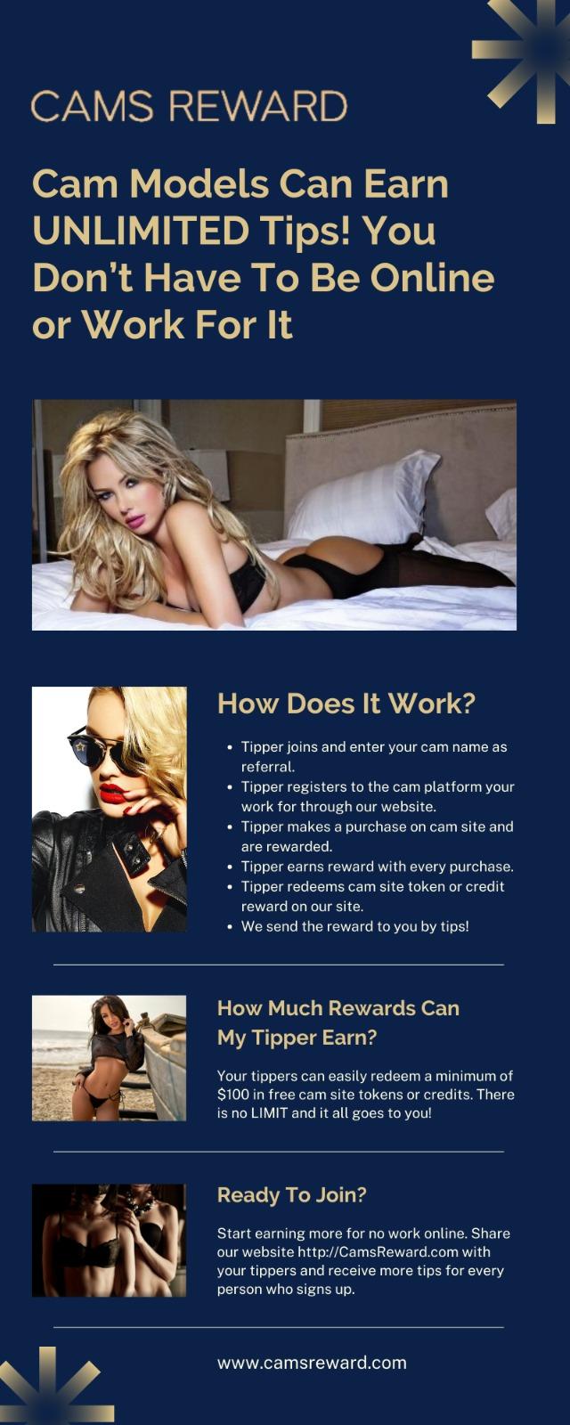 Invite your tippers to join CamsReward.com and they will be rewarded with FREE tokens or credits with every purchase they make on the cam site platform you work for.