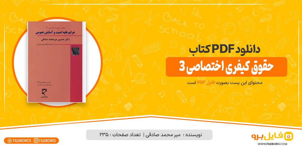 وب سایت فایل برو پی دی اف کتاب حقوق کیفری اختصاصی 3 میر محمد صادقی را در 235 صفحه را برای شما دوستان آماده کرده است. کتاب جرایم علیه امنیت و رفاه عمومی که تحت عنوان درس حقوق جزا ویژه (3) به تشریح و بررسی جرایمی که ارتباط مستقیم با مفاهیم امنیت ملی و رفاه عمومی دارند انجام شده است. با سایت فایل برو همراه باشید.کتاب حقوق جزای اختصاصی 4 میر محمد صادقی pdf