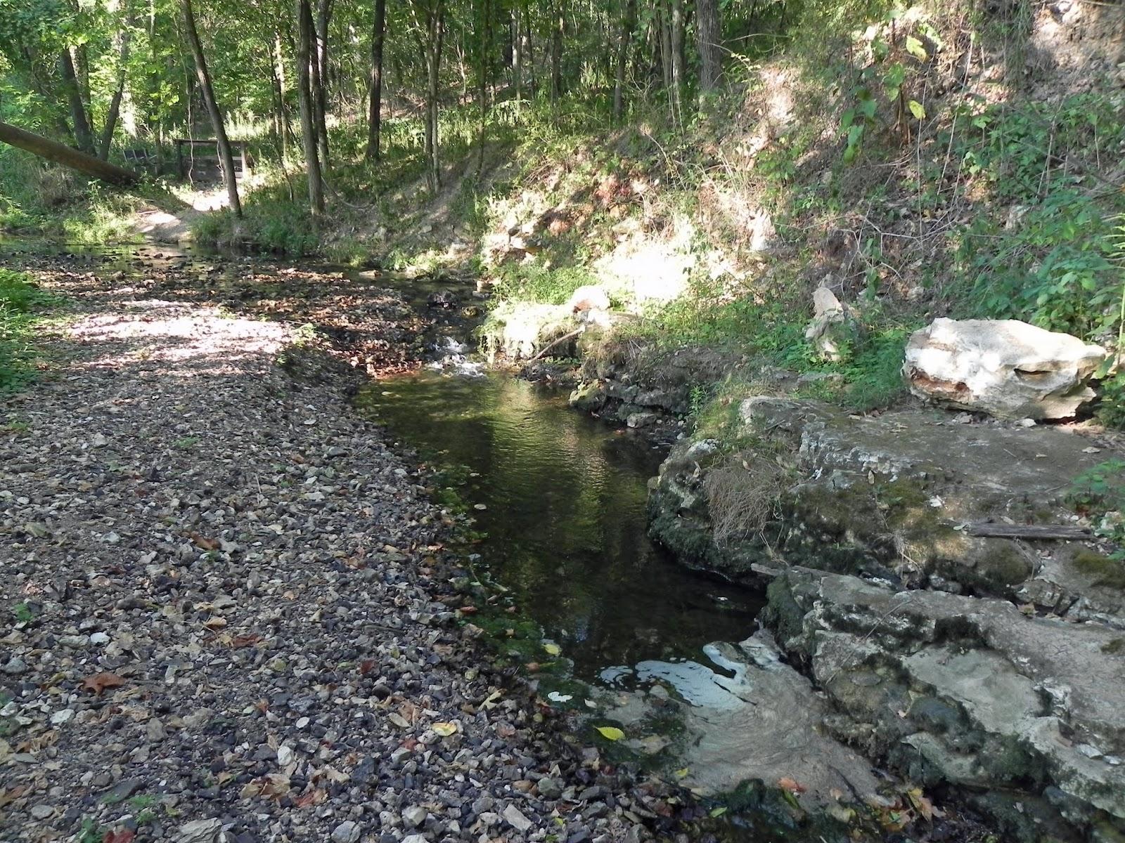 DOWNSTREAM THE STREAMBED IS BARE ROCK.