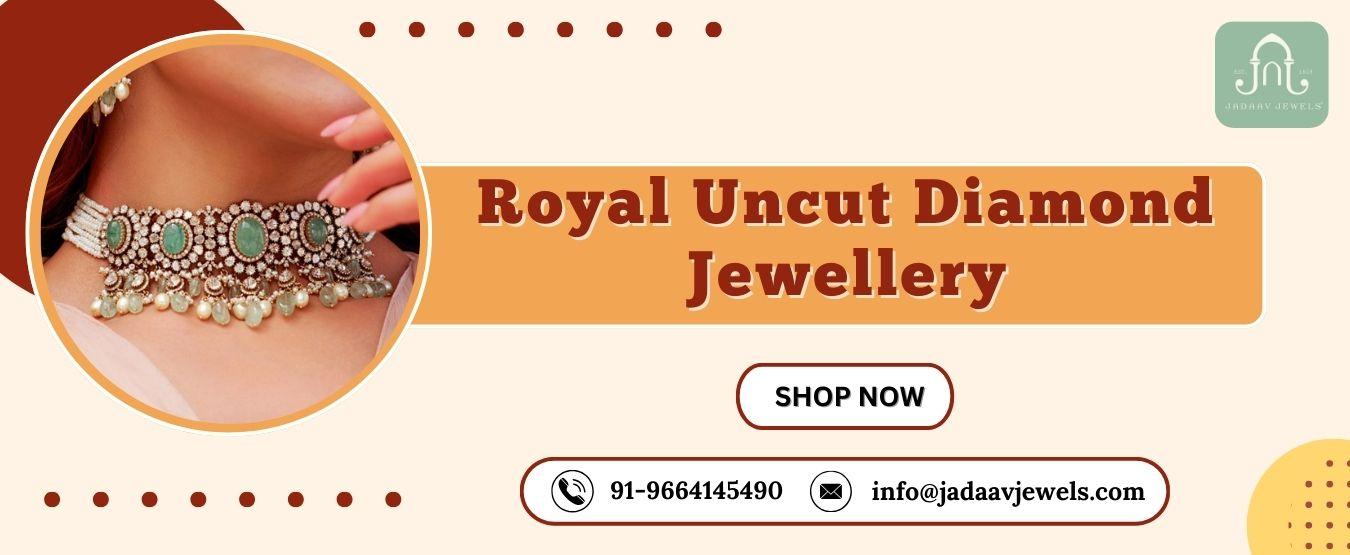 Royal Uncut Diamond Jewellery is a representation of forever luxury that connects tradition with unique styles. These diamonds have been treasured by royals for generations because they maintain their natural, raw shine, creating a mystical shine. Jadaav Jewels creates dazzling necklaces, earrings, bangles and bridal sets with careful Kundan work that highlight their royal beauty. Every item shares a story of culture and history which makes it excellent for daily lifestyle as well as weddings and other special events. Improve your look with a beautiful and luxurious jewellery collection and enjoy the amazing brilliance of natural diamonds at Jadaav Jewels and feel like a king or queen.