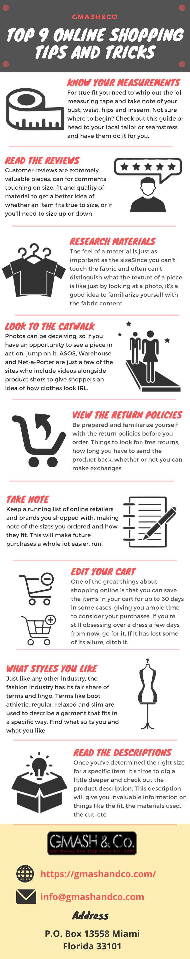 See these fantastic online shopping tips and tricks that will save your money and time while buying clothing items online. If you're fond of buying stuff online but every purchase is going wrong due to the wrong size, color and material don't worry have a look here and find the right way for online shopping.