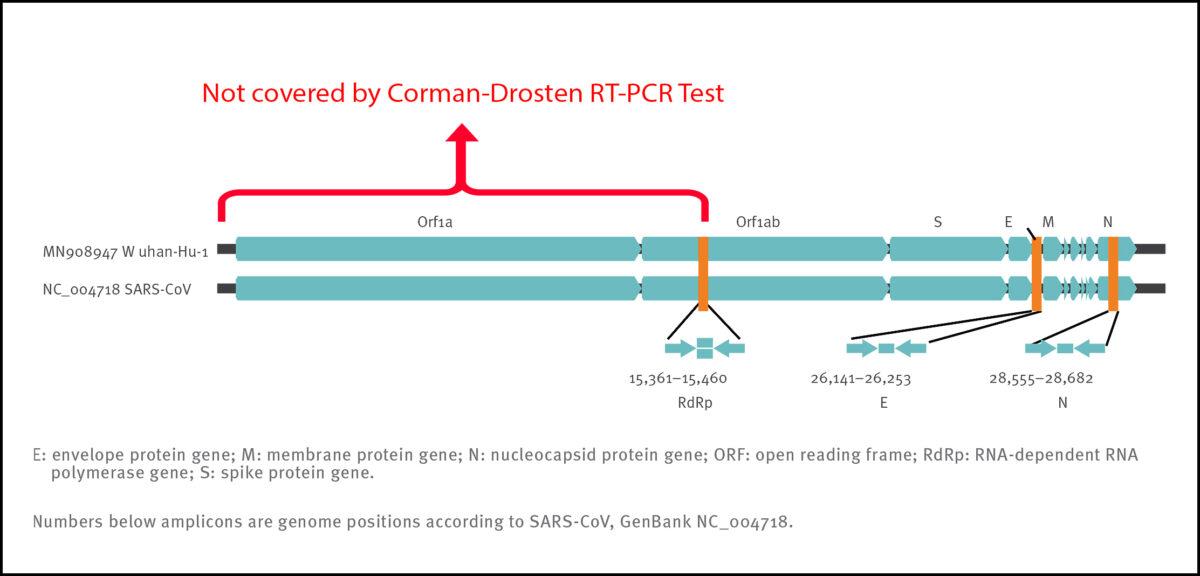 Αν και το έγγραφο Corman-Drosten περιγράφει τρείς (3) εκκινητές, αυτοί οι εκκινητές καλύπτουν μόνο το ήμισυ, περίπου, του γονιδιώματος του ιού. Αυτός είναι ένας άλλος παράγοντας που μειώνει την ειδικότητα για την ανίχνευση ανέπαφου RNA του ιού SARS-COV-2 και αυξάνει την αναφορά ψευδώς θετικών αποτελεσμάτων των δοκιμών/τεστ.