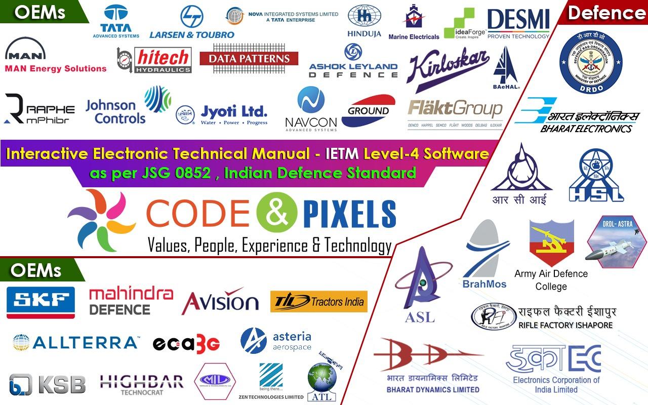 Code and Pixels Interactive Technologies Private Limited (CNP) is an Interactive Electronic Technical manual - IETM Level-4 Software as per JSG 0852, Indian Defence Standard service provider based in Hyderabad (India). Partnering with the best to deliver exceptional Quality & Value. We are proud to work with Indian Defence (Army, Navy, and IAF).