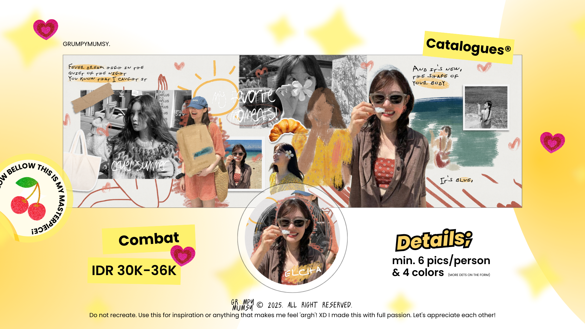 - Minimal 6 pics, boleh drop lebih dari ini (Bebas kok!) dengan catatan silahkan tandain foto-foto utama ingin dipakai dan cadangan apabila beberapa foto tidak bisa digunakan (dengan drop foto cadangan, berarti sudah tidak masalah kalau nanti ada foto direplace).