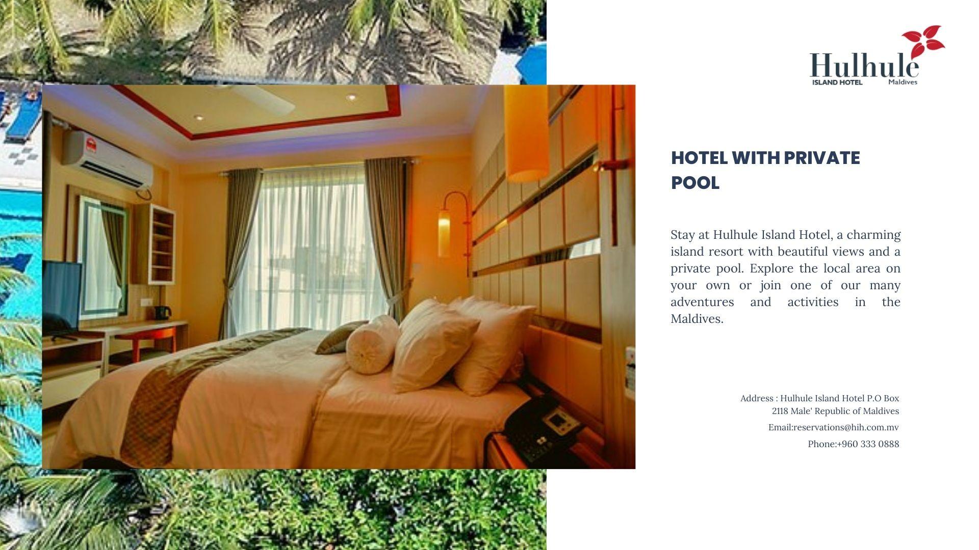 Stay at Hulhule Island Hotel, a charming island resort with beautiful views and a hotel with private pool. Explore the local area on your own or join one of our many adventures and activities in the Maldives. Book your Hotel in Male Maldives with a simple booking. it. Best Available Rate. No reservation costs. Hostels. Motels. Get Instant Confirmation. Bed and Breakfasts. Hotels. Secure Booking. No Booking Fees. Read Real Guest Reviews.