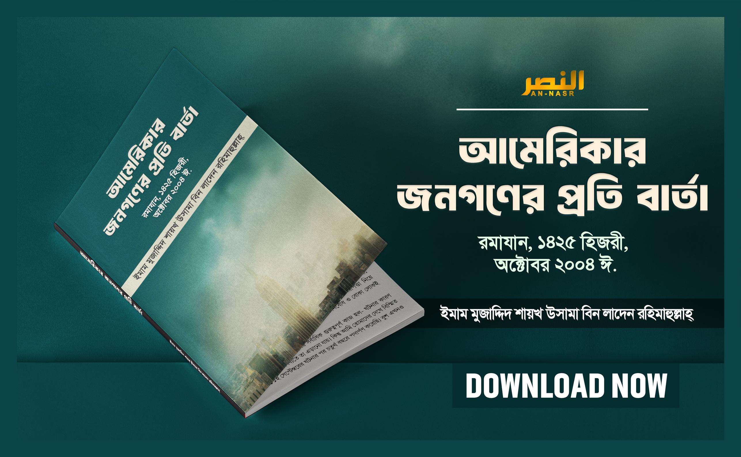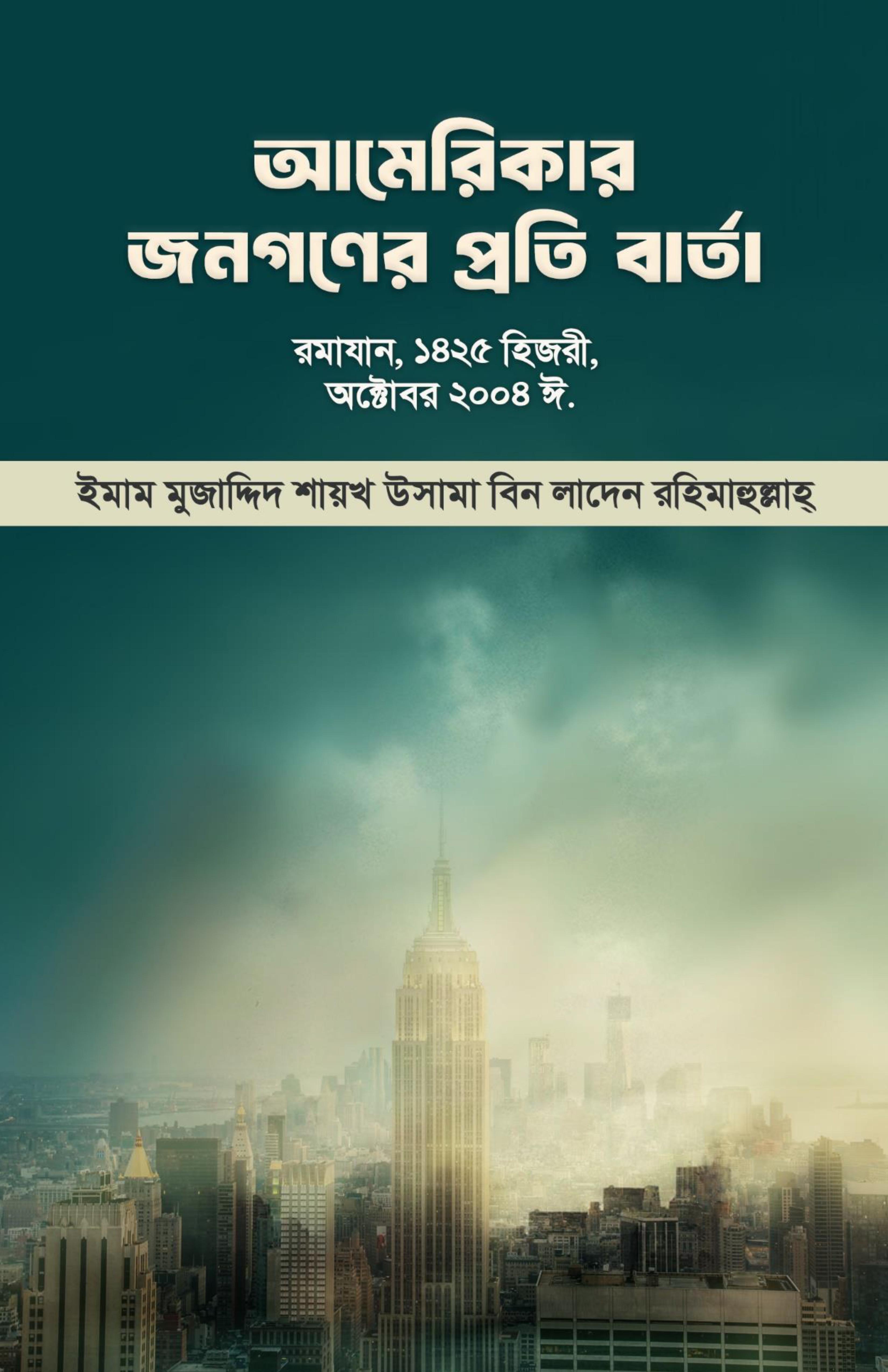 এটা সেই বার্তা, যা আমরা ৯/১১ এর হামলার আগে কয়েক বছর ধরে আমাদের কথা ও কাজের মাধ্যমে বারবার তোমাদেরকে জানাতে চেয়েছি। তোমরা চাইলে ১৯৯৬ সালে ‘টাইম’ ম্যাগাজিনে প্রকাশিত ‘স্কট’ এর সাথে আমার সাক্ষাৎকারটি পড়ে নিতে পারো। এছাড়া ১৯৯৭ সালে ‘সিএনএন’ এর ‘পিটার আর্নেট’ এর সাথে, তারপর ১৯৯৮ সালে ‘জন ওয়াটার’ এর সাথে আমার সাক্ষাৎকারটিও দেখতে পারো। আর তার প্রয়োগ হিসেবে নাইরোবি, তানজানিয়া ও এডেনের ঘটনাগুলো পড়তে পার।
