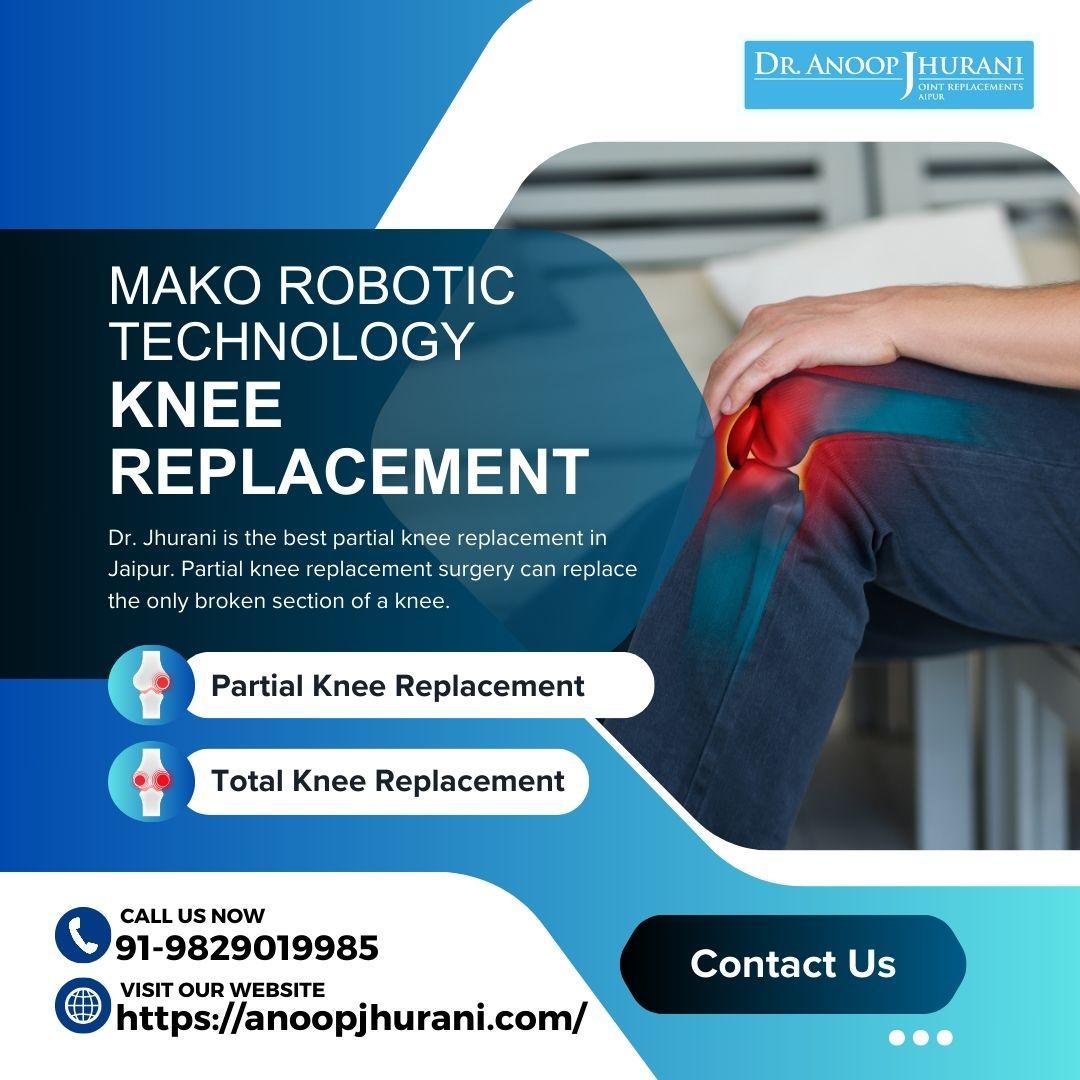 Robotic-assisted knee replacement has transformed knee surgery by improving the precision and accuracy of the procedure. Dr. Anoop Jhurani, a pioneer in robotic-assisted knee replacement, offers partial knee replacements using MAKO robotic technology in Jaipur, India. This technology enhances the surgeon’s ability to perform the surgery with nearly 100% accuracy, reducing the risk of error and improving patient outcomes.