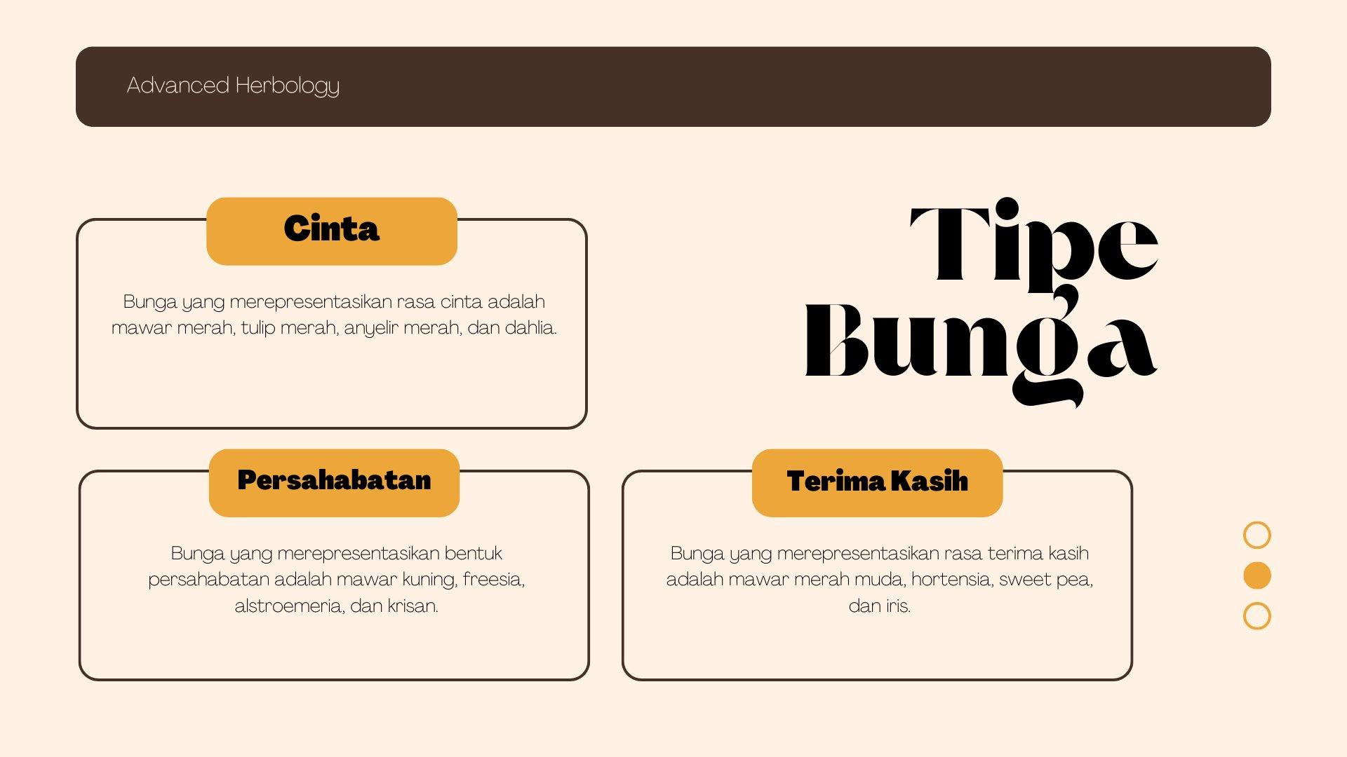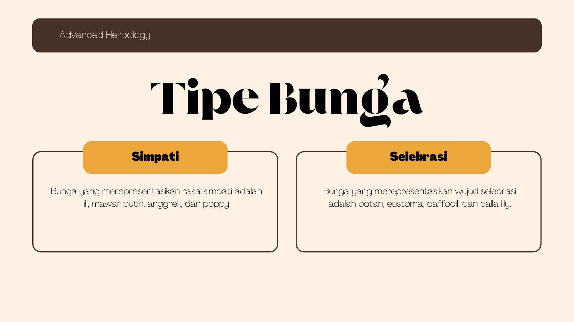 Selain dari itu, dari segi tipe bunga, ada beberapa tipe bunga yang dikelompokkan untuk merepresentasikan arti atau wujud perasaan tertentu. Menarik, ya? Kalian dapat mengekspresikan perasaan menggunakan jenis bunga yang sesuai dengan artinya.
