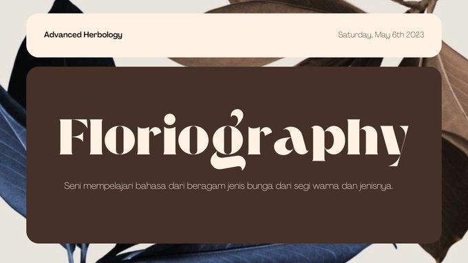 Floriography adalah studi untuk mengenal makna di balik indahnya bunga yang dijadikan pemberian kepada seseorang saat momen spesial berlangsung. Melalui Floriography, kita dapat belajar tentang seni berkomunikasi melalui bunga. Ketika kita sudah mengenalnya, maka kegiatan berbagi atau bertukar bunga akan menjadi lebih mengasyikan dan lebih berkelas.