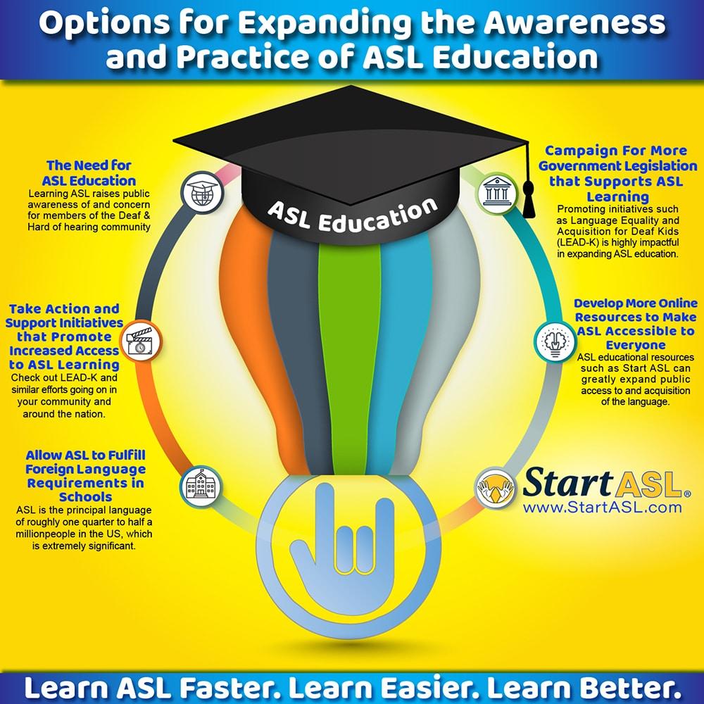 Below are extra approaches to expanding ASL learning via the government, communications media, and educational systems.