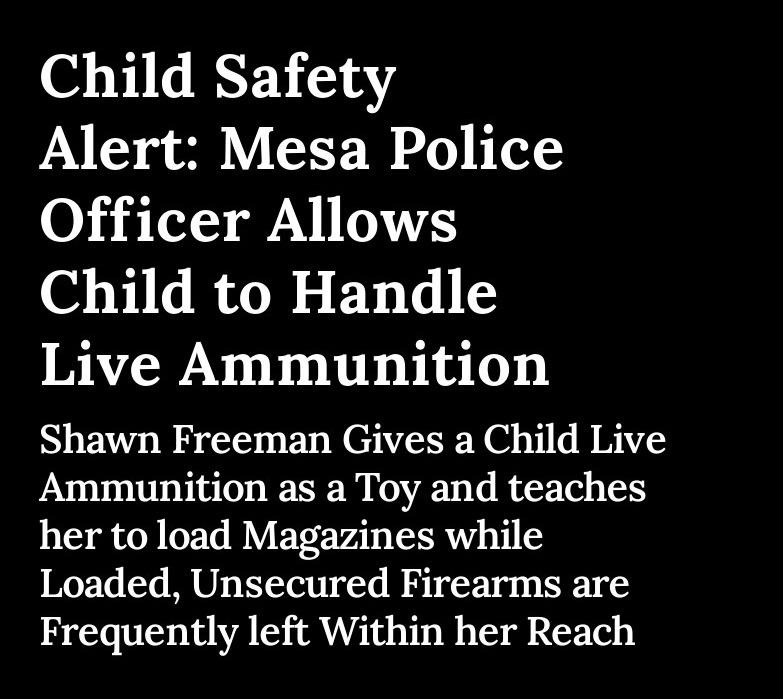 Shawn Freeman, Child Endangerment, Irresponsible Gun ownership, Mesa Police Department, Mesa PD, Chief Ken Cost, Maricopa County District Attorney Rachel Mitchell, Mayor John Giles, Mesa SWAT Team, Shawn Tyler Freeman, Shawn T Freeman, Child Abuse, endangerment, reckless endangerment, Pinal County Arizona, Pinal County Sheriff, Governor Katie Hobbs, Arizona Attorney General Kris Mayes, Police Corruption, Police Misconduct, Failure to Secure Firearms, Firearm Liability