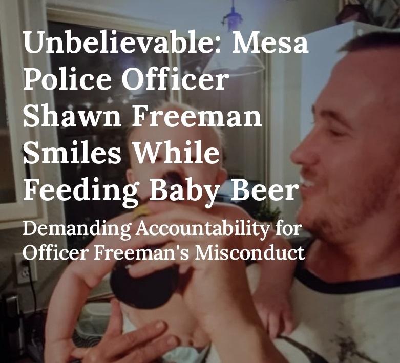 Mesa, Arizona - Officer Shawn Freeman of the Mesa Police Department was caught on camera feeding a baby beer from a bottle labeled clearly as containing beer, and he did so multiple times while smiling for photos.
