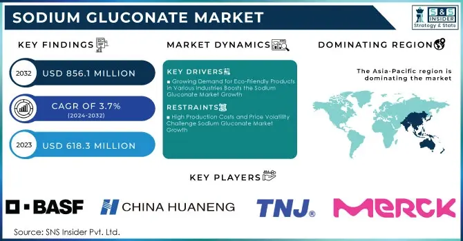 The Sodium Gluconate Market Size was valued at USD 618.3 million in 2023 and is expected to reach USD 856.1 million by 2032 and grow at a CAGR of 3.7% over the forecast period 2024-2032.