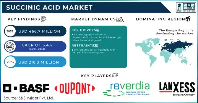 - Shift Toward Renewable Feedstocks: The production of bio-based succinic acid from agricultural and microbial sources is expanding, driven by regulatory incentives and consumer preference for green chemicals.