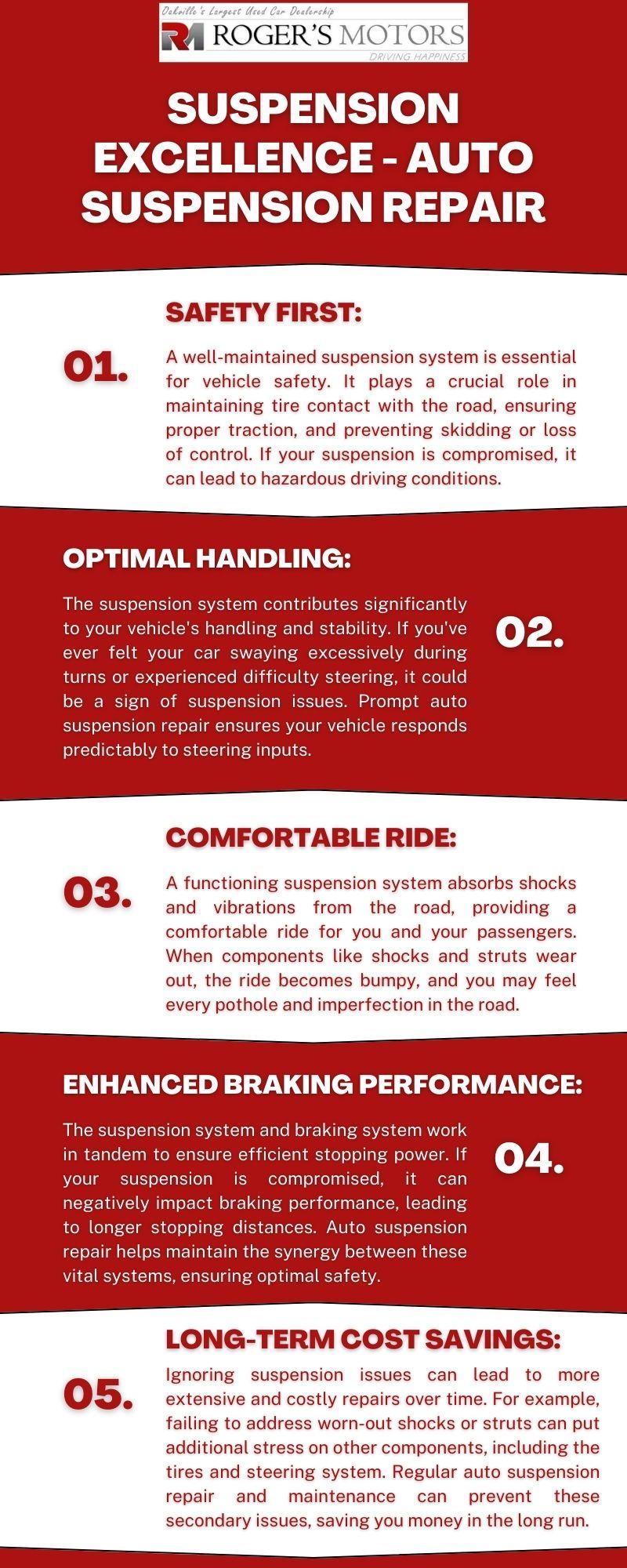 The suspension system of your vehicle is a critical component that often goes unnoticed until issues arise. Understanding the importance of auto suspension repair can help you maintain a smooth, safe, and comfortable driving experience. Regular inspections and timely repairs are key to preserving the performance and safety of your vehicle's suspension system. If you notice any signs of suspension problems, don't hesitate to consult with a professional technician for a thorough inspection and necessary repairs.