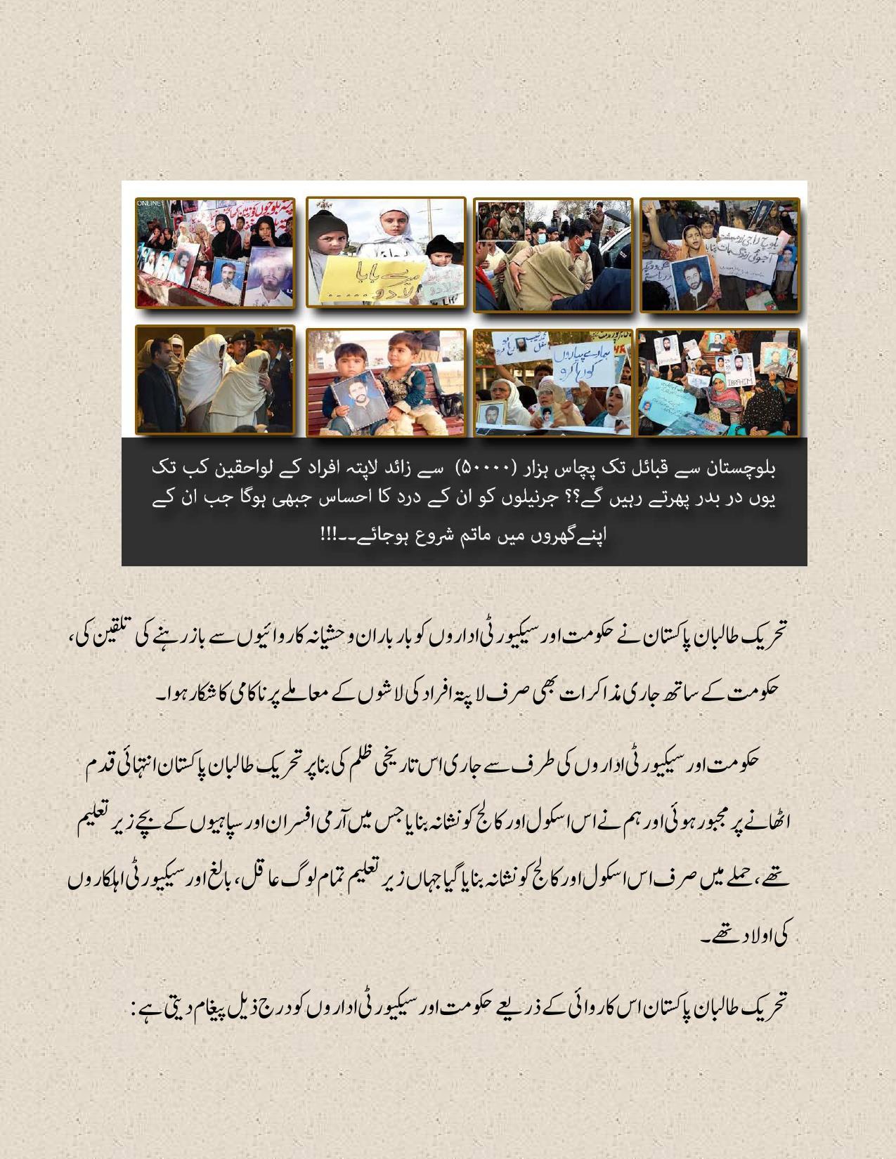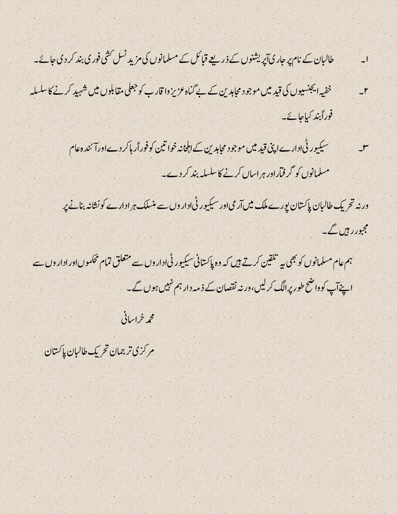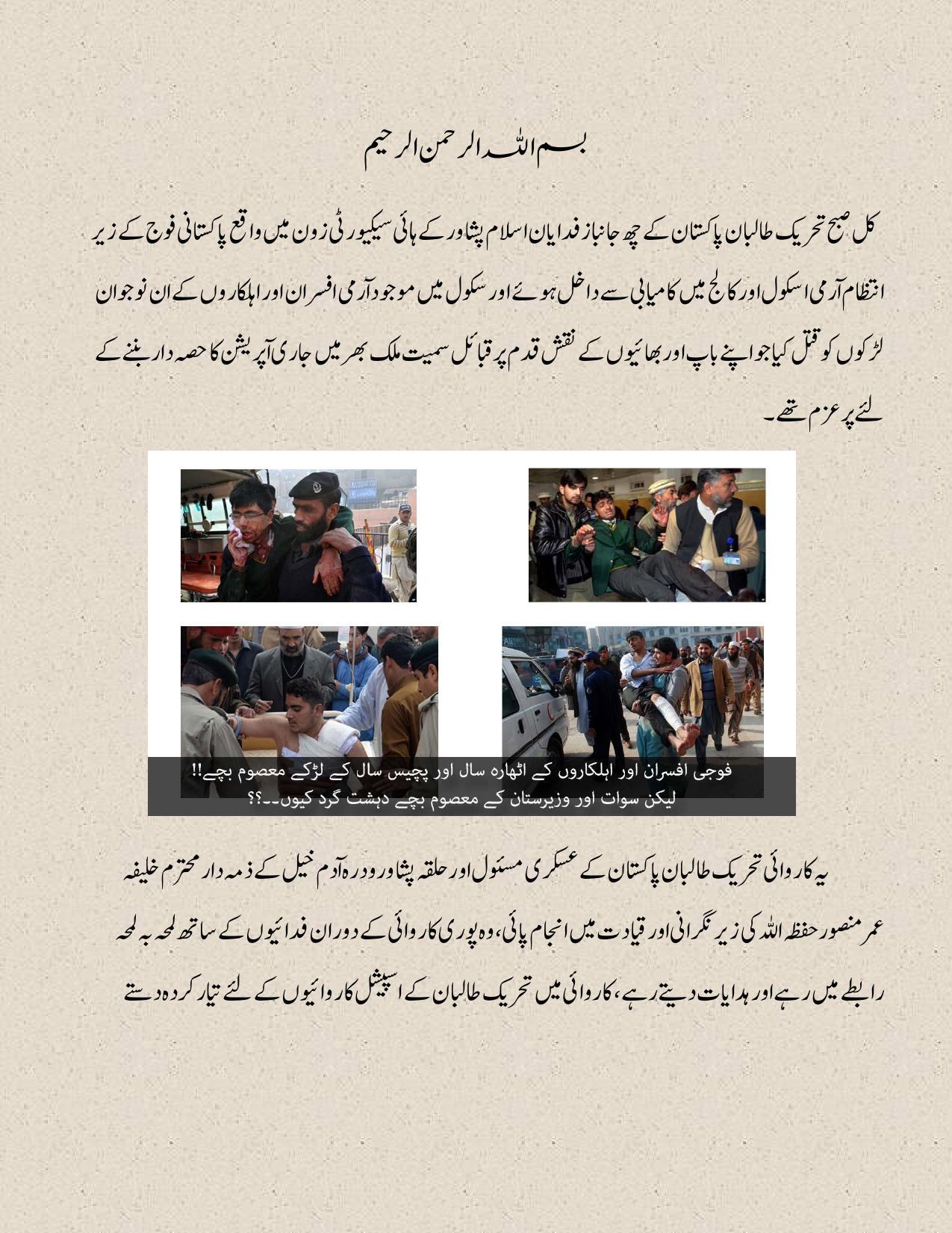 پشاور حملہ کے بارے میں تحریک طالبان کا بیان