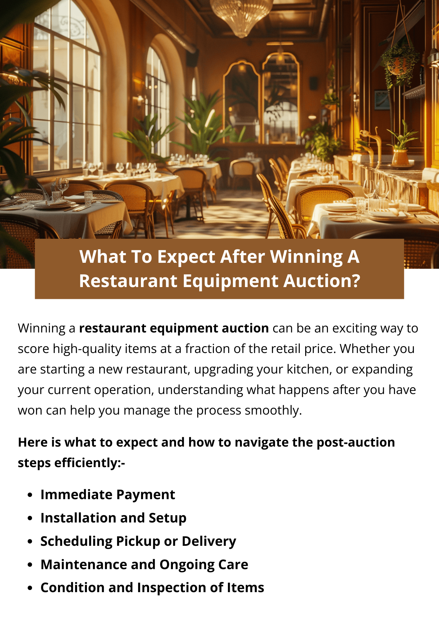Winning a restaurant equipment auction can be a cost-effective way to acquire valuable items, but it requires careful planning after the auction ends. Timely payment, organized pickup or delivery, equipment inspection, and proper installation will ensure that the process goes smoothly and that your new equipment serves your restaurant well.