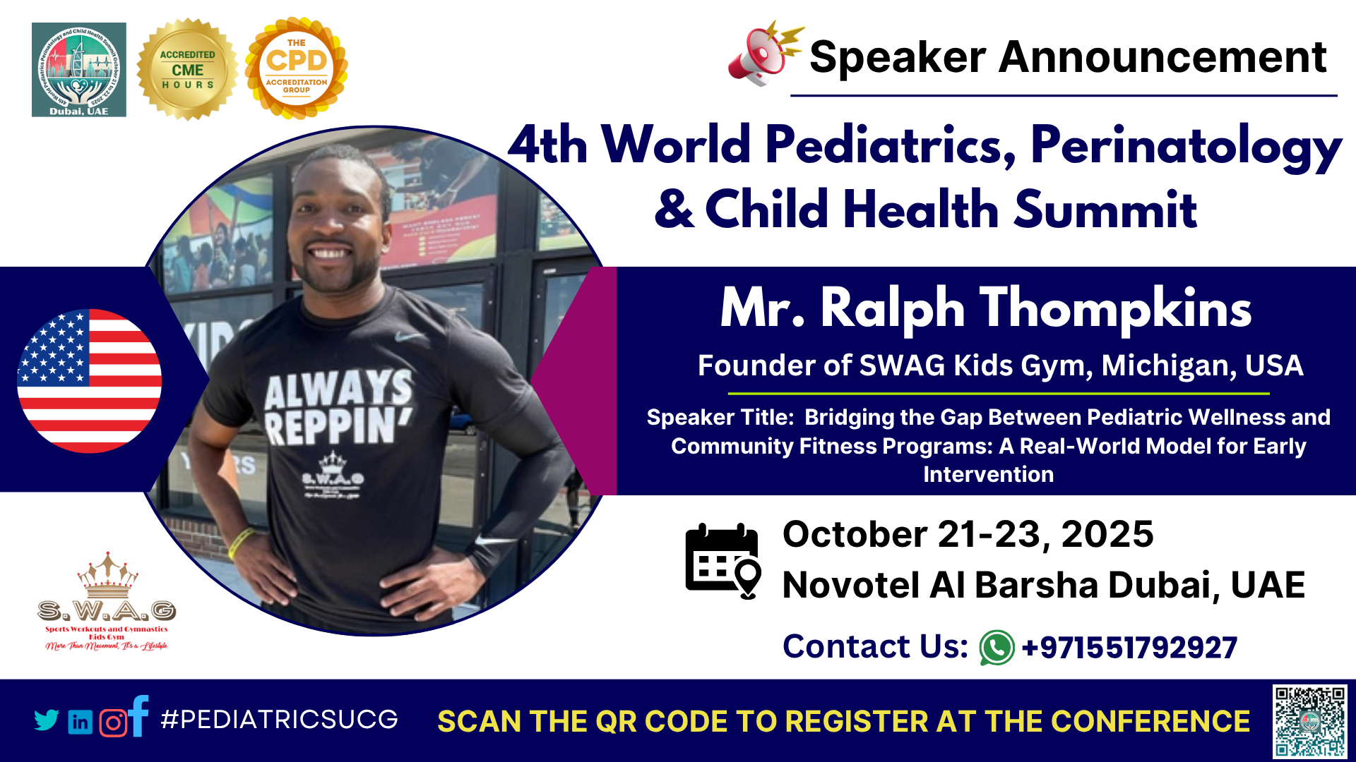 Ralph Thompkins exemplifies the future of pediatric wellness—where community, fitness, and emotional growth intersect. His keynote session at the 4th World Pediatrics, Perinatology, and Child Health Summit promises insight, inspiration, and actionable strategies for educators, healthcare professionals, parents, and community leaders.